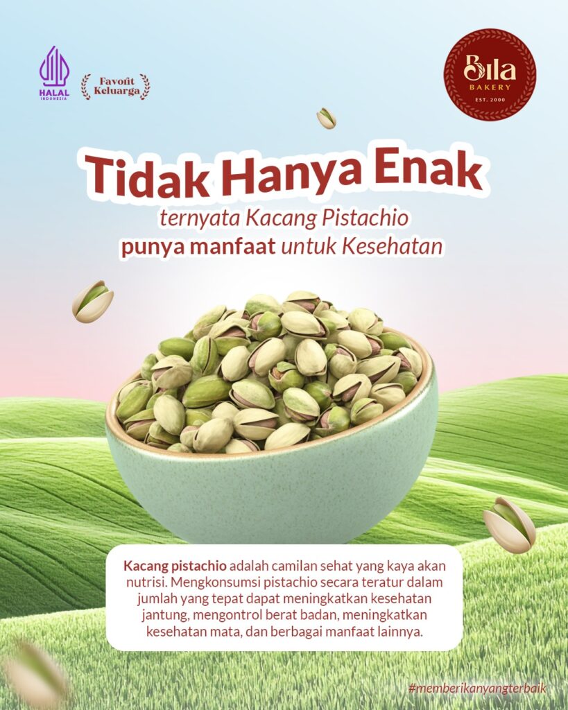 Jika selama ini Anda mengenal pistachio sebagai camilan lezat yang renyah, kini Anda perlu tahu bahwa kacang satu ini memiliki lebih banyak manfaat daripada yang terlihat. Pistachio bukan hanya sekadar camilan mewah, tetapi juga sumber nutrisi yang luar biasa kaya dan baik untuk tubuh. Karena itulah Bila Bakery memilih pistachio sebagai salah satu bahan premium untuk menghadirkan produk berkualitas bagi keluarga Anda.